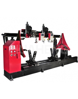 The ring seam equipment is designed and manufactured according to user requirements. Mainly used for circumferential seam welding of cylinders, with a length of 2500mm. It is mainly composed of rotary head frame, tailstock, hydraulic pump station, beam, feeding pneumatic bracket, welding trolley, electric carriage, arc protection cover, control box and so on. During welding, one end of the workpiece is clamped by a three-jaw adjustable chuck on the spindle with a clamping range of Ф300~Ф1000mm, and the outer circle of the workpiece can be concentric with the spindle according to the scale on the gripping plate. The other end is tightened by the centering device on the hydraulic tailstock, and can be supported by a liftable pneumatic bracket in the middle of the workpiece as required.