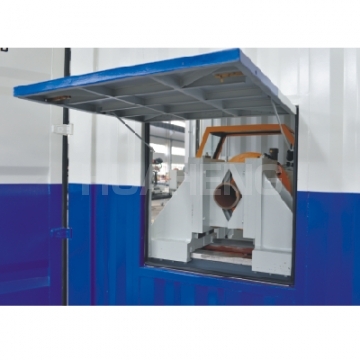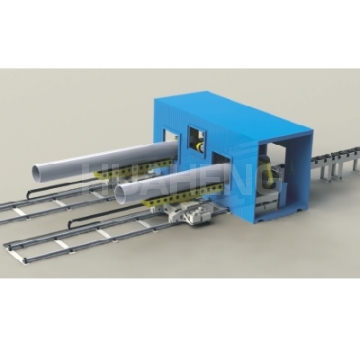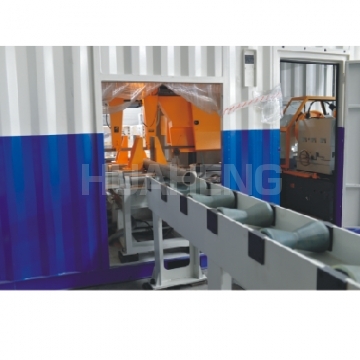 Basic configuration: cutting and beveling workstation + simple logistics conveying system + container